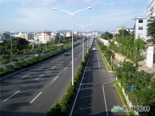 該工程位于國道205深圳段龍崗區(qū)地鐵三號線愛聯(lián)地鐵站至坪地與惠州市交界處,施工內(nèi)容包括綠化種植、綠化噴灌與管道安裝等。植物配置遵循適地適樹的原則,并充分考慮與城市風(fēng)格的吻合,兼顧多樣性和季節(jié)性,通過多層次、多品種的搭配,營造出處處有綠葉、無處不飛花,一路風(fēng)景變化萬千的城市景觀帶。