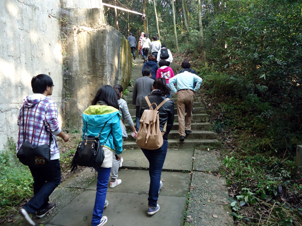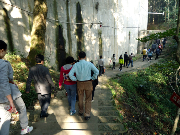 一路上,臺階時(shí)高時(shí)低,地勢時(shí)陡時(shí)緩,很快,就有人喊著走不動了,而有人則依然健步如飛……大隊(duì)人馬很快分散成了一條長長的隊(duì)伍,在蜿蜒的山路中向著高處奮勇攀登!