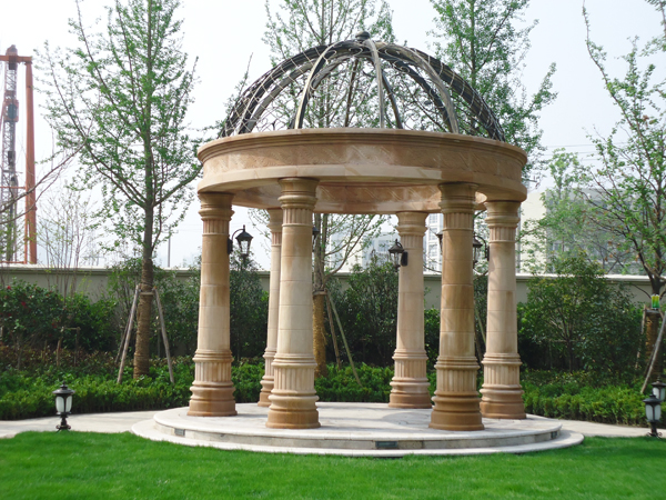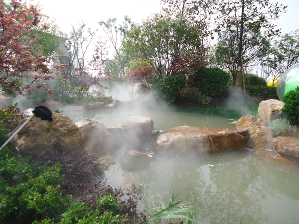 更引人注目的,還有銷售展示中心前面的雕塑噴泉,該噴泉運用花崗巖整石雕刻拼接而成,工藝極其復雜,自上而下不斷灑落的水花,營造出一片清涼;無以復加的鏤空鐵藝圓頂繁復花紋和拱門的石材立面裝飾的皇家景觀亭,精致中透露出大氣;潺潺溪流、霧氣繚繞的人工溪澗,如夢似幻;大面積的高爾夫果嶺草坪蜿蜒起伏,華貴雍容……