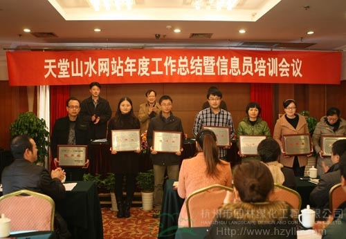 會議的重要環(huán)節(jié)之一為表彰先進(jìn)。徐協(xié)平宣讀獲獎文件之后,周定炎、徐協(xié)平、繆梓倫為獲得2012年度“天堂山水”門戶網(wǎng)站的十佳單位、先進(jìn)個人、優(yōu)秀子網(wǎng)站進(jìn)行了頒獎。其中,杭州市園林綠化工程有限公司網(wǎng)站被評為“優(yōu)秀子網(wǎng)站”,于會蓮?fù)颈辉u為信息宣傳工作“先進(jìn)個人”。
