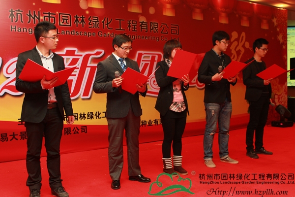 1月7日,杭州市園林綠化工程有限公司2012年新春團拜會暨2011年度先進集體和先進個人表彰大會在蕭山開元名都大酒店4樓競潮廳隆重舉行,全國政協委員、省人大財經委主任丁耀明,浙江省林業廳副廳長楊幼平,杭州市林水局副局長楊文鐘、陳勤娟等特約領導和嘉賓應邀出席,公司領導、各部門員工、各項目部及分公司代表,杭州綠地種業有限公司、杭州易大景觀設計有限公司全體員工等400余人齊聚一堂,度過了這一難忘時刻。