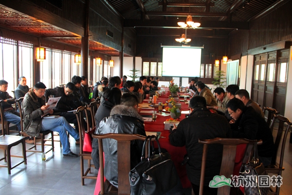 1月17日,杭州市園林綠化股份有限公司在畫境·青山湖花園中心召開了2014年度工作總結會議。董事長吳光洪、總裁張炎良等高層管理人員及各部門負責人參加了會議。會議由總裁助理吳憶明主持。