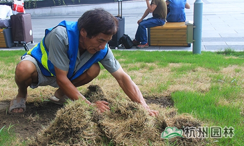 烈日下,他們在進行苗木養護工作,美景,離不開他們的辛苦付出