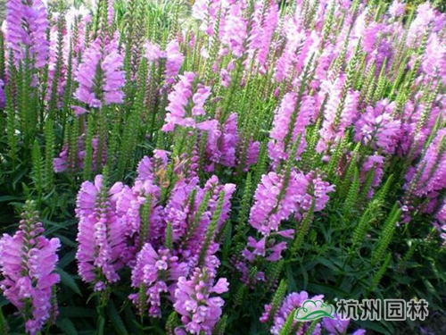 假龍頭,莖叢生而直立,四棱形,株高可達(dá)0.8米。單葉對生,披針形,亮綠色,邊緣具鋸齒。花色淡紫紅,因其花朵排列在花序上酷似芝麻的花,惟密度稠一些,故名芝麻花。花期7月至9月。養(yǎng)護(hù)時(shí)每月均需施磷鉀肥。