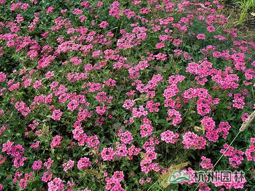 美女櫻,其姿態(tài)優(yōu)美,花色豐富,色彩艷麗,盛開時(shí)如花海一樣,令人流連忘返。美人櫻株叢矮密,花繁色艷,開花部分呈傘房狀,花色有白、紅、藍(lán)、雪青、粉紅等,花期為5-11月。喜陽光、不耐陰,較耐寒、耐蔭差、不耐旱。花期可噴磷酸二氫鉀,促進(jìn)花開放。
