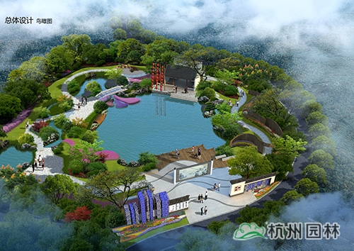 浙江園以“浙·鄉·綢”為設計主題,采用傳統浙江園林的造景手法,以寫意的自然山水展現浙江獨特的水網密布的地理地貌、小橋流水的江南韻味以及水鄉的蠶、茶文化,詮釋“夢回江南、絲路通商”的概念,力求打造“良渚源、蠶茶鄉、古韻風、新思路”的歷史情境,巧妙植入園林新科技、新技術、新品種,展示“越溪浣紗、陌上錦霞、古道尋遺、煙氣汀州和絲路新語”等現代浙江園林的景觀新風貌。