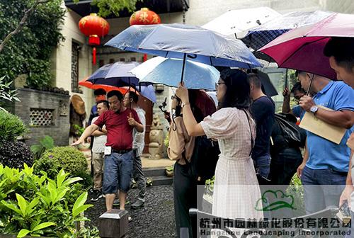 分享會采取現(xiàn)場觀摩的形式,在位于杭州文二西路香洲里的樂軒和可園,杭州市園林綠化股份有限公司常務副總裁、花園分會副會長李壽仁帶領大家領略了兩個庭院的不同風光,并從庭院營建中的地面鋪裝、植物選擇、空間布局、小品布置、人文情懷、細節(jié)處理等方面作了詳細闡述。