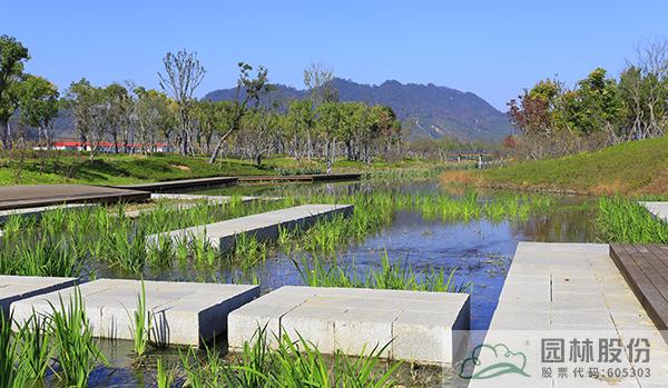 項目還充分利用滸溪及靈峰湖沿線的湖灣和眾多洼地,引水入園,打造雨水花園、下沉式綠地等,通過豐富的植物配置與景觀小品,形成沿湖而生的各個景點,并設置各色景觀橋連通內塘與外湖的生態通道,將周邊景點有機串連。花木葳蕤景色各異,湖光山色相映成趣,整個滸溪沿線形成一個可循環的生態系統,有效改善和美化了周邊環境,展現可持續發展的造園理念。