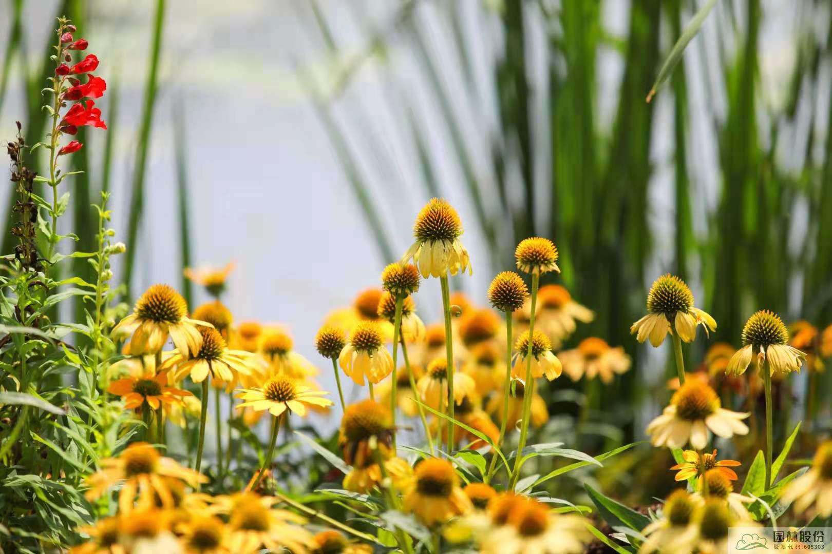 向日葵、松果菊等黃色系植物,宛如熱情的太陽,明艷動人。