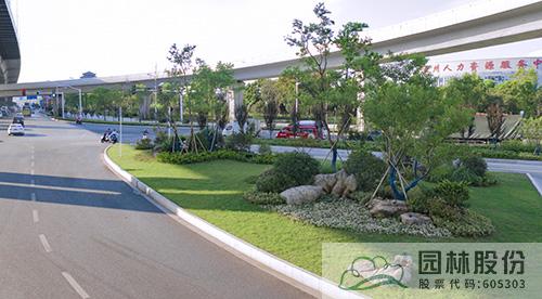 項目綠化施工主要包括道路分車帶、道路兩側帶狀綠地、節點綠地、高架橋垂直綠化等區塊。每個區塊根據其功能與特色,通過不同植物配置,營造豐富景觀。