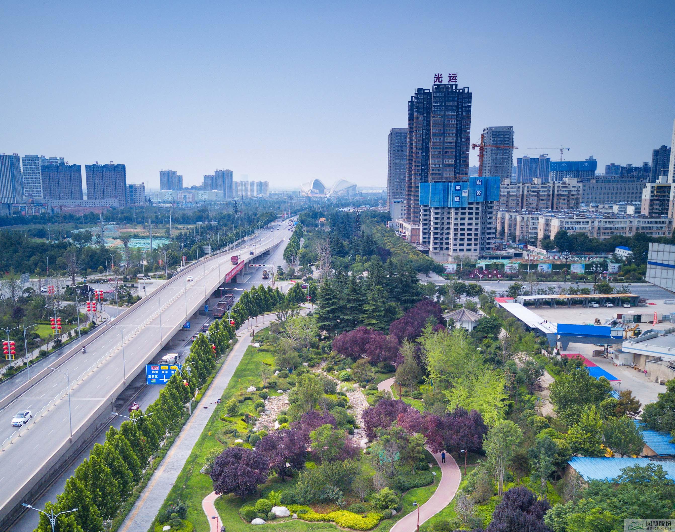立體園林,師法自然。在另一個(gè)城市園林項(xiàng)目——渭南市中心城市道路綠化提升改造項(xiàng)目,南北向沿倉(cāng)程路和渭清路的兩條城市綠廊成為打造重點(diǎn),公司打破原有西北城市綠化景觀一成不變的陣列布局,在高鐵站對(duì)面的倉(cāng)程路端頭,設(shè)計(jì)以造型油松為主的迎賓景觀,豐富植物組團(tuán)層次,引進(jìn)耐旱耐寒的常綠品種,滿足渭南市人民對(duì)城市景觀從園林變園藝的期待,打造煥然一新的城市風(fēng)貌。