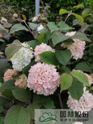 忍冬科莢蒾屬,落葉灌木,國內(nèi)從日本引進,株高可達2.5-3m。新葉成暗紅色,后期會慢慢褪去,呈綠色。整個花序都是不育花,球形,花苞粉綠色,開放后淡粉色,最后變成白色。花期4月初到5月初。秋天的樹葉顏色多變,像油畫調(diào)色板一樣絢麗多彩。它適應我國大部份地區(qū)種植,病蟲害較少。冬季至早春可修剪。一年施肥3次,早春萌芽前,花后及秋季。適合園藝盆栽或庭院觀賞。