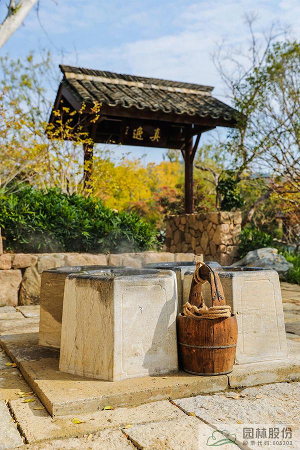 問茶:展區以龍井山園為主景進行打造,種植2000余株龍井“43號”。茅草雙亭立于山頂,為欣賞整個展園的佳處。周邊山色青秀、泉水淙淙,體現出西湖人問山、問水、問茶的游賞情致。