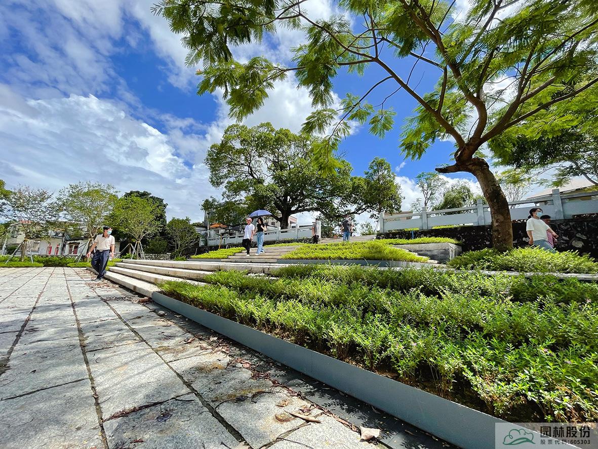 入口進入,是石咀防范匪患而建的黃泥百年碉樓,為凸出碉樓這一特殊的建筑,我們在碉樓設計開闊的,擁有與碉樓相關記憶符號的村口節點小公園。