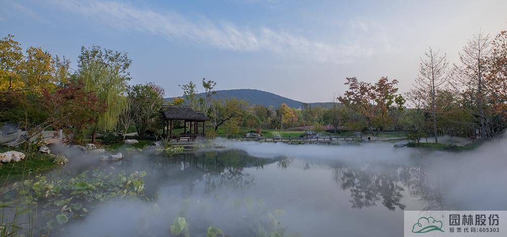 為保證園內水質干凈清澈,水系采用了兩套循環系統。一套是內循環,將湖里的水抽到山頂上,沿溪流而下,中間逐級補水;由于湖的體量較大,湖內單獨設一套循環系統,保證水體流動,同時在湖里放養了螺絲、雜魚,周邊種植水生植物,確保水質效果。)