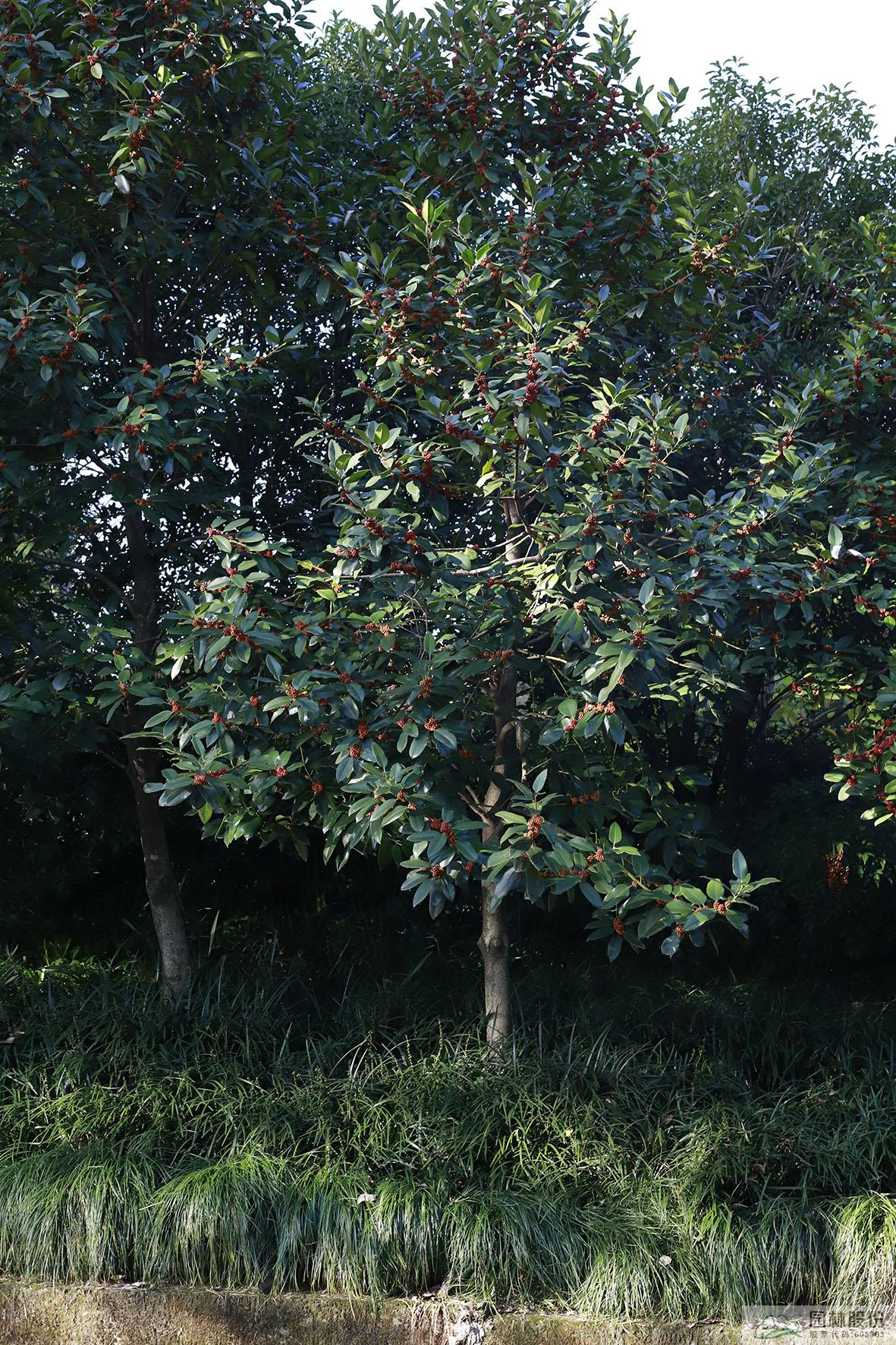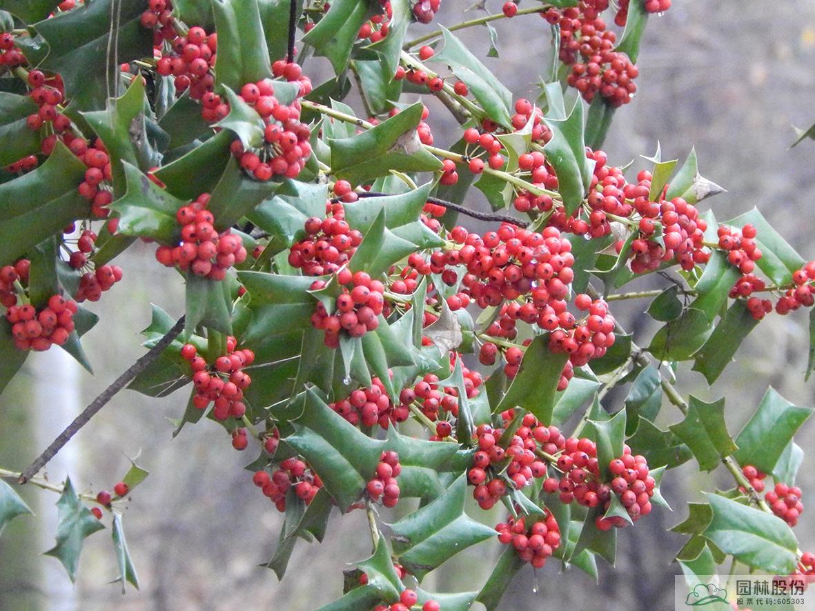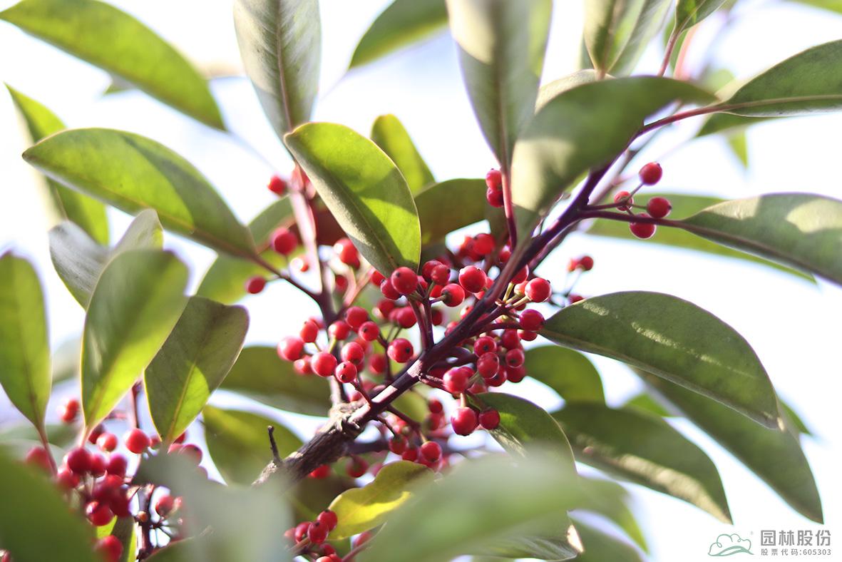 鐵冬青:其葉子四季常青,故名鐵冬青。為常綠喬木或灌木,高可達(dá)20米,葉全緣。果實(shí)紅色,紅若丹珠,小巧可人。掛果期長(zhǎng),能從10月一直持續(xù)至來(lái)年3月。因有多子多孫,興旺發(fā)達(dá)之意,在民間俗稱(chēng)“萬(wàn)子千紅樹(shù)”。樹(shù)皮或根皮為中藥“救必應(yīng)”,具清熱解毒,利濕的功效。為優(yōu)良觀果樹(shù)種,適宜在園林中孤植或群植。