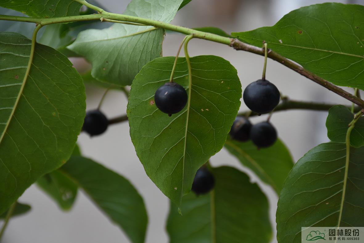 大果冬青:落葉喬木,樹(shù)體高大,分枝點(diǎn)高。葉片紙質(zhì)至堅(jiān)紙質(zhì),卵形或卵狀橢圓形。花白色且具淡淡的香氣。果成熟時(shí)黑色,球形。四季景觀分明,隨時(shí)間和空間變化呈現(xiàn)不同的姿態(tài),色彩和意境,常在園林景觀中孤植。