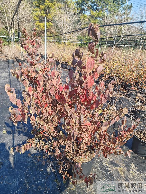 忍冬科莢蒾屬,落葉灌木,全株被毛。花白色,量大,花期4月。果紅色,量通常較小,果期10-12月。秋季葉色變暗紅,通常11月開始變色,12月至次年2月達(dá)到最佳觀賞效果。病蟲害較少,生長速度快,且耐寒,通常雪期還未落葉。植株極耐修剪,適合工程應(yīng)用或庭院觀賞。