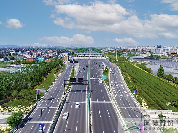 項目采用江南園林自然式組團配置造園手法,通過豎向堆土形成立體空間,以銀杏、黃山欒樹等鄉土樹種為背景基調,丹桂、紫薇及球類構成前景,針形、卵形、帚型植物之間相互襯托。結合杭州亞運特色,以立體綠雕塑、亞運吉祥物、時花布置、道旗裝飾、收費站門樓及收費亭、公安檢查站、花箱等多種展現形式,呈現“綠色亞運理念”,展現共贏金銀銅牌,共享綠色盛會,共賞錢江潮涌。