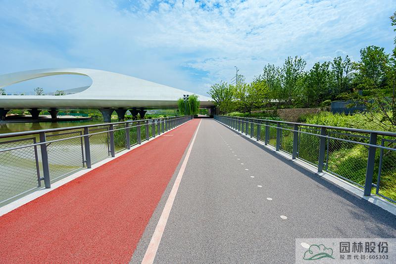 城市綠道通過(guò)鋪裝材質(zhì)區(qū)分出騎行道和跑步道。騎行區(qū)域采取瀝青材質(zhì),提高耐久度和使用壽命,有效控制成本造價(jià)。跑步道區(qū)域采用EPDM塑膠顆粒面層,提高使用舒適度,采取靚麗的色彩與騎行區(qū)域進(jìn)行區(qū)分。結(jié)合人才驛站設(shè)置瞭望臺(tái),游人在此可小憩補(bǔ)充體力,也可登高俯瞰河道景觀。造型獨(dú)特的驛站和瞭望臺(tái)也是河道上的一處風(fēng)景。