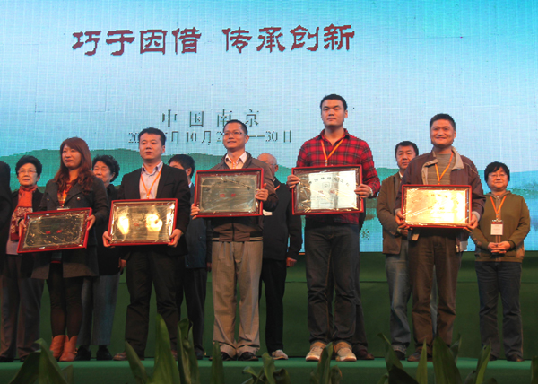 30日下午閉幕式的一個重要環節是為2011年度中國風景園林學會優秀園林工程獎獲獎單位頒獎。由杭州市園林綠化工程有限公司承建的“昆明市市級黨政機關辦公用房搬遷建設項目區內景觀綠化工程(第三標段)”和“吳江市震澤鎮寶塔街西入口沿河、沿街北側、后花園仿古建筑工程”分別榮獲“中國風景園林學會優秀園林綠化工程獎金獎”和“中國風景園林學會優秀園林古建工程獎銀獎”。高總代表公司上臺領取了獎牌。