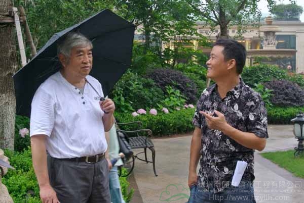 中國風景園林學會園林工程分會秘書長商自福(左)在現場進行考察